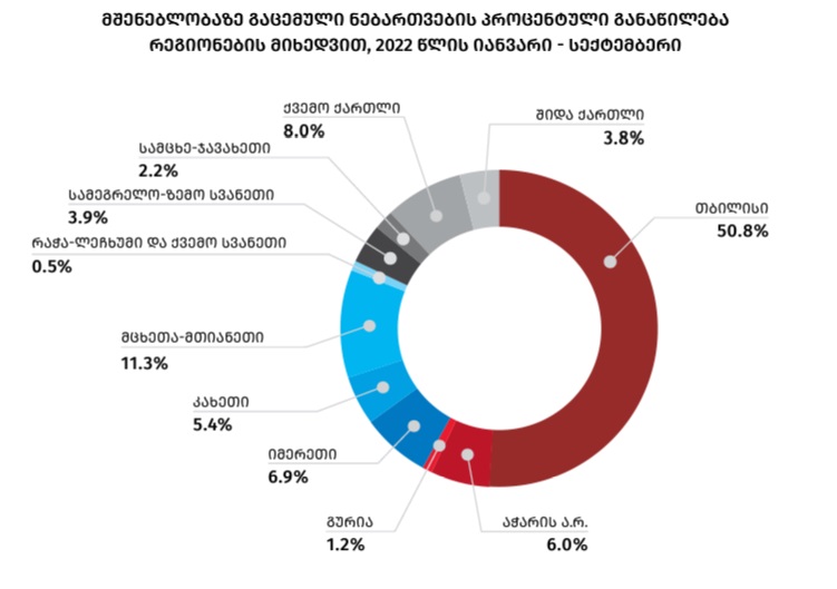 2022 წლის იანვარ-სექტემბერში ნებართვები გაიცა მრავალფუნქციური საცხოვრებელი კომპლექსების, სავაჭრო ობიექტების, სასტუმროების, სამრეწველო საწარმოების, სასოფლო-სამეურნეო დანიშნულების ობიექტებისა და სხვა შენობა-ნაგებობების მშენებლობაზე.