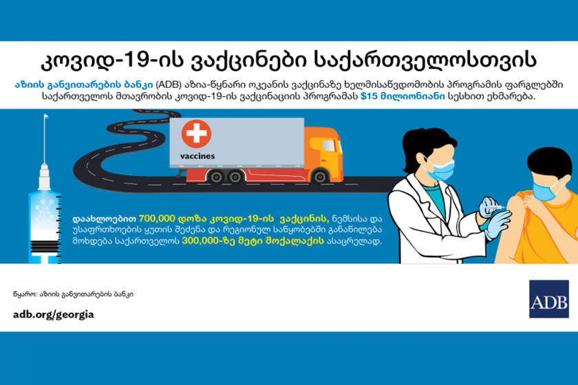 აზიის განვითარების ბანკი საქართველოს, კოვიდსაწინააღმდეგო ვაქცინაციისთვის, $15-მილიონიანი სესხით დაეხმარება