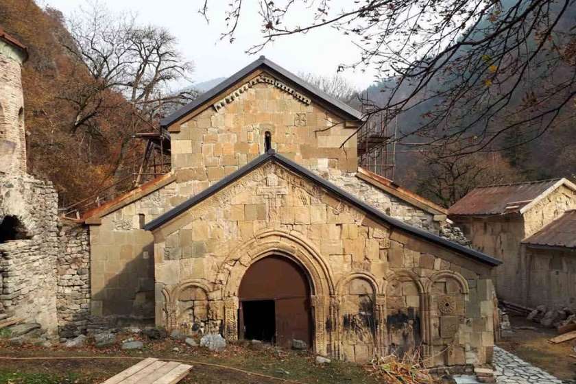 „მონოლითურად მოეწყო მისი სარტყელი და კამარის თაღები. ანტისეპტიკური და ცეცხლგამძლე ხსნარით დამუშავებულ ბურულქვეშა კონსტრუქციაზე დაეგო ჰიდროსაიზოლაციო მემბრანა. ამორტიზებული თუნუქის სახურავი კი შეიცვალა ლორფინის იმიტაციის მქონე დაფერილი თუნუქით. ღვთისმშობლის ტაძარის ფასადისა და ინტერიერის ამორტიზებული ქვის საპირე წყობები ფრაგმენტულად გადაეწყო კირხსნარზე, ხოლო სრულად დეგრადირებულ არეალებზე კი პერანგის ქვები ქვიშაქვის ახალი კვადრებით ჩანაცვლდა. ინტერიერში არსებული ბზარები და გამოქარული მონაკვეთები ჰაერის ჭავლით დამუშავდა, გამოსუფთავდა და კირდურაბით ინექტირდა. არქეოლოგიური ზედამხედველობით აიყარა კრიტიკულად დაზიანებული აგურის იატაკის ფენილი, რომელიც ქართული ტრადიციული წყობის ნიჩბისის ქვით მომავალ წლის პირველივე თვეებში შეიცვლება. სამონასტრო კომპლექსის ეზოში აიყარა დაზიანებული ქვის სარინელი. მის ნაცვლად 10 სმ სისქის ხრეშის ფენილზე დაეგო ნატეხი ფლეთილი ქვის ფილების ახალი სარინელი, რომელიც ტაძარს სახურავიდან ნადენ წყალს აარიდებს“ - აღნიშნულია სააგენტოს განცხადებაში.