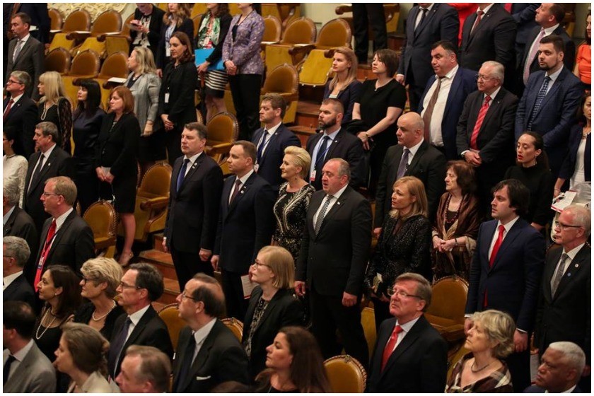 საქართველოს პრეზიდენტი და პირველი ლედი, პოლონეთის პრეზიდენტთან და პირველ ლედისთან, ლატვიის პრეზიდენტთან, საქართველოს პრემიერთან და პარლამენტის თავმჯდომარესთან ერთად, ოპერისა და ბალეტის თეატრში საქართველოს დამოუკიდებლობის დღისადმი მიძღვნილ საზეიმო გალა კონცერტს დაესწრნენ.