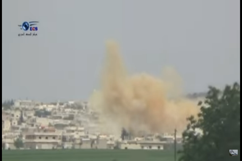 რუსულმა მედიამ, სირიის ხელისუფლებაზე დაყრდნობით გაავრცელა ინფორმაცია, რომ ავიაიერიში გუშინ 17:30 - 17:50 საათებს შორის განხორციელდა. სირიის გენშტაბის ცნობით, იერიშის ტერიტორიაზე წარმოიქმნა კვამლის თეთრი ღრუბელი, რომელიც მოგვიანებით გაყვითლდა, რაც ტერორისტების საწყობში დიდი ოდენობით ქიმიური იარაღის არსებობაზე მიუთითებს. გენშტაბი აქვე დასძენს, რომ სირიის ხელისუფლება ქიმიურ იარაღს არ ფლობს.