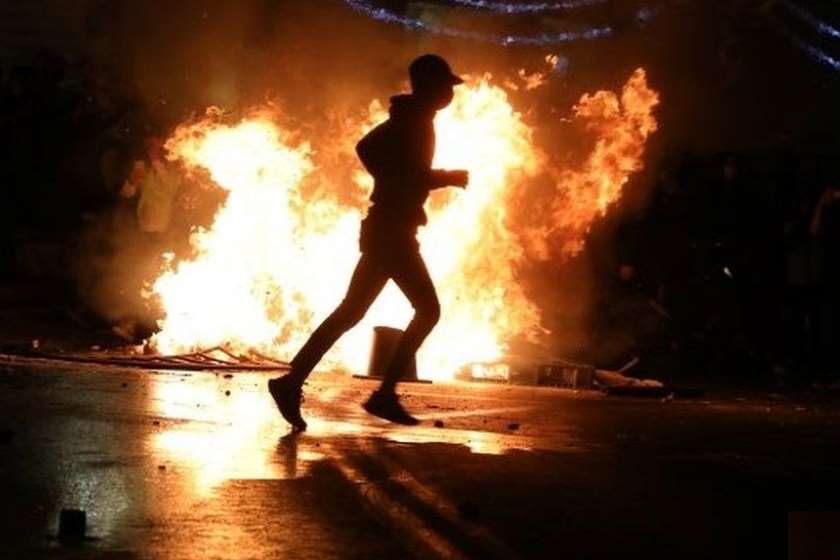 ნაციონალისტური და რელიგიური დაძაბულობის ფონზე მიმდინარე დაპირისპირებისას, ქუჩაში გამოსული ადამიანები ერთმანეთს ქვებსა და ბოთლებს ესროდა. მათ დასაშლელად, პოლიციამ ხმოვანი-მანათობელი ყუმბარები (Stun Grenade) გამოიყენა.
