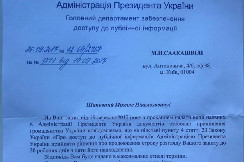 „პრეზიდენტის ადმინისტრაცია დოკუმენტის გადმოსაცემად კიდევ 20 დღეს მთხოვს, მაშინ, როცა ეს ჯერ კიდევ ივლისში უნდა გაეკეთებინათ. წარმოიდგინეთ, როგორ ექცევიან ისინი სხვა მოქალაქეებს. ამის მერე კიდევ მე მეუბნებიან, რომ სასამართლოს უნდა მივმართო. საინტერესოა, როგორ გავაკეთო ეს ამ დოკუმენტების გარეშე,“-წერს სააკაშვილი.