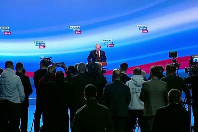 სამდღიანი არჩევნების დასრულების შემდეგ კრემლის ლიდერმა საარჩევნო შტაბში ჟურნალისტებს უმასპინძლა. ვლადიმირ პუტინმა რუსეთის გაძლიერებასა და უკრაინის საკითხზეც ისაუბრა. რუსეთის მოქმედმა პრეზიდენტმა არ გამორიცხა, რომ უკრაინის ტერიტორიაზე სანიტარული ზონა შეიქმნას.