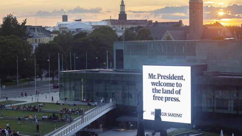 ფინეთის უმსხვილესმა გაზეთმა Helsingin Sanomat-მა ტრამპისა და პუტინის სამიტამდე ჰელსინკის ქუჩებში გამოაქვეყნა ბილბორდები, რომლებზეც თავისუფალი პრესის დაცვის შინაარსის ტექსტები წერია. ბილბორდზე სიტყვები რუსულ და ინგლისურ ენაზე წერია. "ბატონო პრეზიდენტო, მოგესალმებით თავისუფალი პრესის ქვეყანაში", - წერია ერთ-ერთ ბილბორდზე.