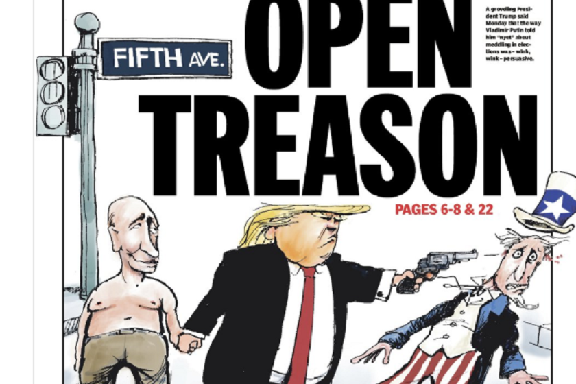 გაზეთმა New York Daily News-მა აშშ-ის პრეზიდენტისა და რუსეთის პრეზიდენტის შეხვედრის შემდეგ კარიკატურა შექმნა, რომელიც დონალდ ტრამპისა და ვლადიმერ პუტინის მეგობრობას უსვამს ხაზს და რის გამოც "ტრამპი მზადაა თავისი ქვეყნის ინტერესები შესწიროს".