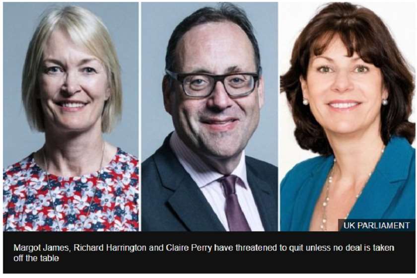 რიჩარდ ჰარინგტონის, კლერ პერისა და მარგო ჯეიმსის თქმით, თუ Brexit-ზე მოლაპარაკება წარუმატებლად დასრულდა, ბრიტანეთის ევროკავშირიდან გამოსვლის პროცესი აუცილებლად უნდა გადაიდოს და ქვეყანამ ორგანიზაცია შეთანხმების გარეშე არაფრით არ უნდა დატოვოს.