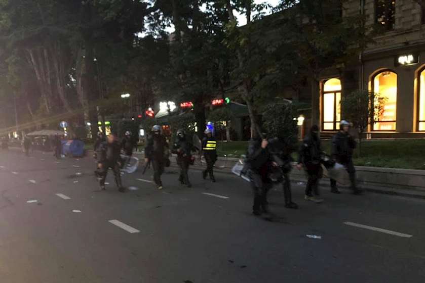 რუსთაველის გამზირზე დაწყებული აქციის მონაწილეები ახლა ჭავჭავაძის გამზირზე, თსუ-ს პირველი კორპუსის წინ იმყოფებიან. იქვე არიან ოპოზიციონერი პოლიტიკოსებიც. თავის მხრივ აქციის მონაწილეები ქვებს იმარაგებენ.