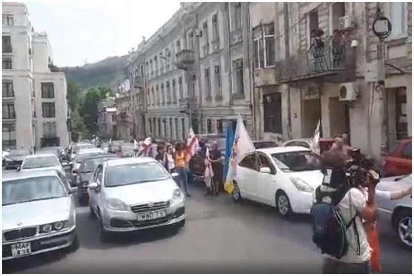 აქციის მონაწილეები ადგილამდე ავტოკოლონებით მივიდნენ.
