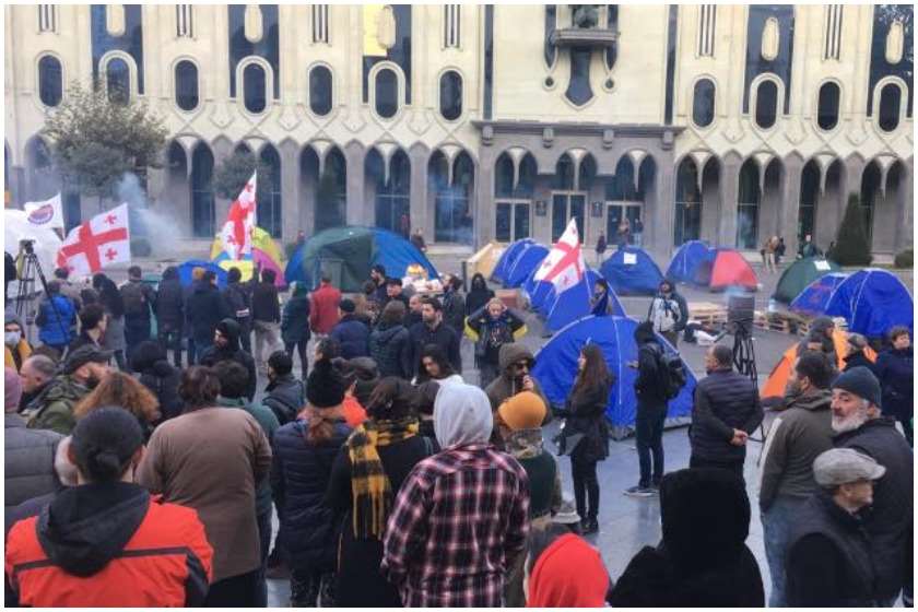 დღეს დილით პარლამენტში დეპუტატები არ შეუშვეს. რუსთაველის გამზირი მეორე დღეა აქციის გამო გადაკეტილია.