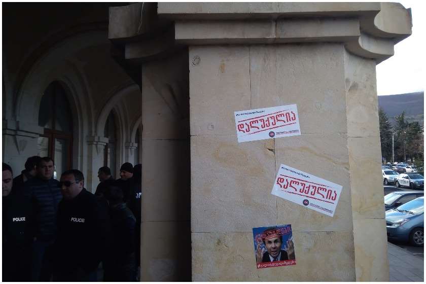 აქციის მონაწილეებმა შენობასთან სიმბოლურად სტიკერები გააკრეს და განაცხადეს, რომ ბოქლომს დღეს თუ არა ხვალ აუცილებლად დაადებენ, რადგან მაჟორიტარებმა ხალხს პროპორციული არჩევნები წაართვეს.