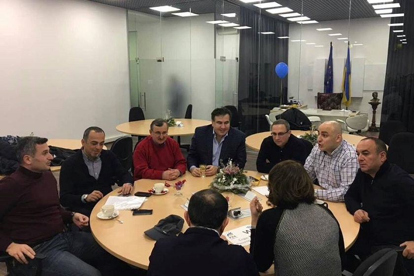 დავით კირკიტაძე, ლევან ვარშალომიძე, რომან გოცირიძე, ნიკა რურუა, ნიკა მელია, აზერ სულეიმანოვი, კობა ნაყოფია და სალომე სამადაშვილი კიევში მიხეილ სააკაშვილს ხვდებიან.