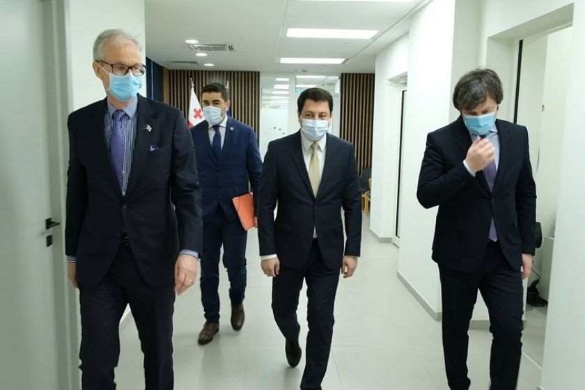 „ქართული ოცნების“ წარმომადგენლები ბოლო 9 საათის განმავლობაში ევროპული საბჭოს პრეზიდენტის, შარლ მიშელის პირად წარმომადგენელს, კრისტიან დანიელსონს მეორედ ხვდებიან. შვედ დიპლომატთან შეხვედრაზე არჩილ თალაკვაძე, ირაკლი კობახიძე და შალვა პაპუაშვილი მივიდნენ. მეორე შეხვედრის დაწყებამდე არცერთ მათგანს კომენტარი არ გაუკეთებია.