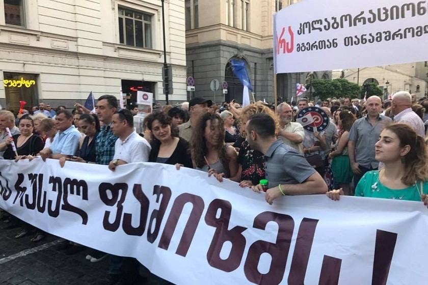 აქციის მონაწილეებმა, დასასრულს, ფეიერვერკი გაუშვეს და ევროკავშირის ჰიმნი იმღერეს.