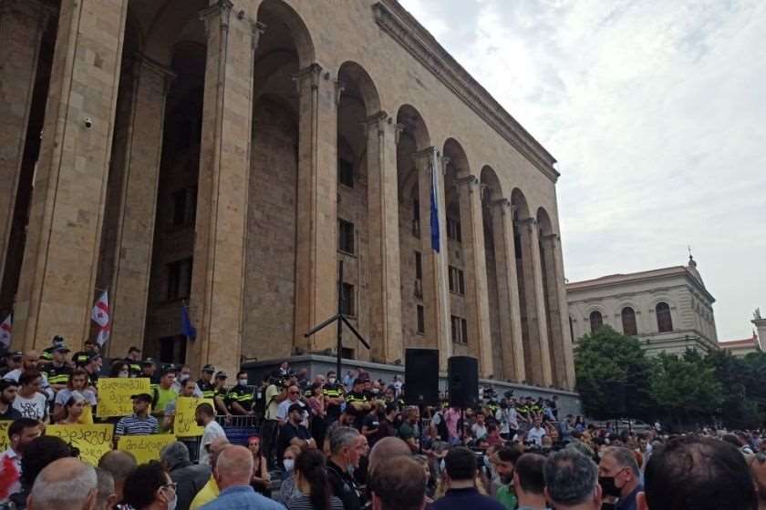პარლამენტთან მედიის წარმომადგენლების საპროტესტო აქცია მიმდინარეობს