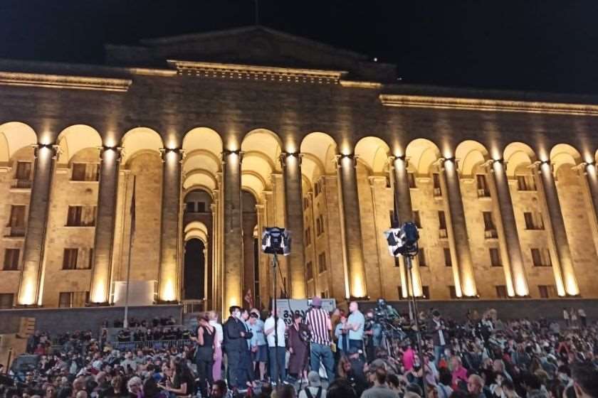 პარლამენტის წინ მედიის წარმომადგენლების აქცია გრძელდება. შეკრებილები პრემიერ-მინისტრისა და შინაგან საქმეთა მინისტრის გადადგომასა და 5 ივლისს ძალადობის ფაქტებთან დაკავშირებით ყველა დამნაშავის დასჯას ითხოვენ.
