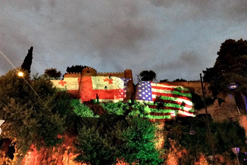 ევროპის მოედანი საქართველოსა და აშშ-ის დროშების ფერებში განათდა