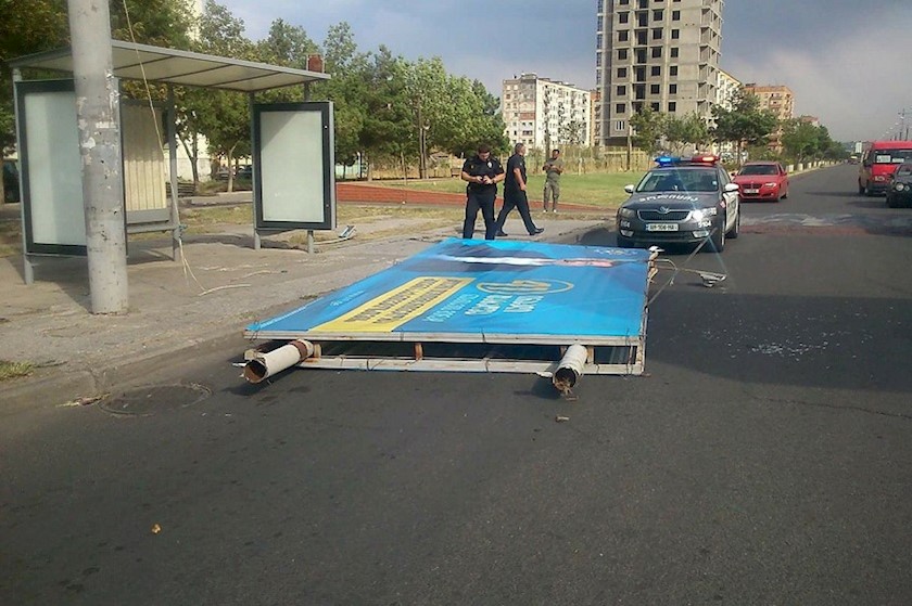 რუსთავის შესასვლელში ძლიერმა ქარმა სარეკლამო ბანერი ჩამოაგდო. შემთხვევის შედეგად არავინ დაშავებულა. ადგილზე საპატრულო პოლიციაა მობილიზებული.