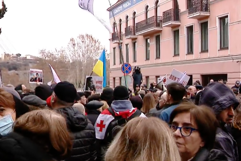 „ქართული ოცნების“ ოფისთან „ნაციონალური მოძრაობის“ წევრები და მხარდამჭერები საპროტესტო აქციას მართავენ. შეკრებილთა მთავარი მოთხოვნა, მიხეილ სააკაშვილის გათავისუფლება და ჰუმანიტარული მიზნით, საზღვარგარეთ კლინიკაში გადაყვანაა. აქციის მონაწილეებს ადგილზე მიტანილი აქვთ ბანერები და დროშები წარწერით „თავისუფლება მიშას".