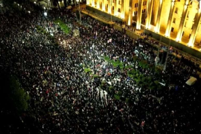 პარლამენტთან „უცხოური გავლენის გამჭვირვალობის შესახებ“ კანონპროექტის საწინააღმდეგო აქცია იმართება