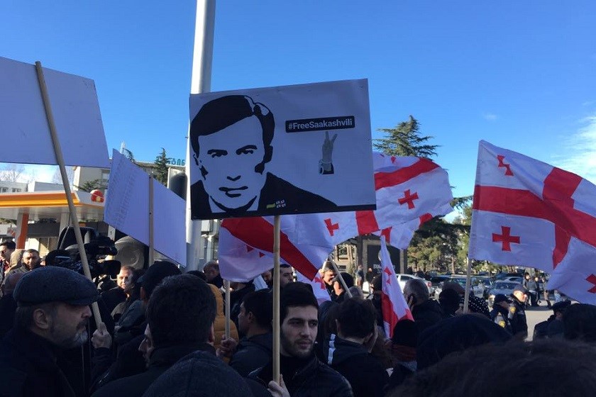 საქართველოს ყოფილი პრეზიდენტის თანაგუნდელები საქართველოში უკრიანის საელჩოსთან საპროტესტო აქციას მართავენ. მიხეილ სააკაშვილი არის პოლიტიკური დევნილი - ეს არის მთავარი გზავნილი, რასაც "ნაციონალური მოძრაობა" უკრაინის ხელისუფლებას უგზავნის და საერთაშორისო თანამეგობრობას საქმისთვის შესაბამისი კვალიფიკაციის მინიჭებას სთხოვს.