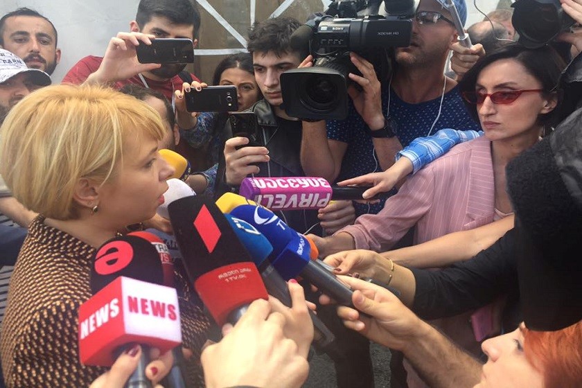 რუსთაველზე, პარლამენტთან შეკრებილებთან ომბუდსმენი, ნინო ლომჯარია მივიდა.