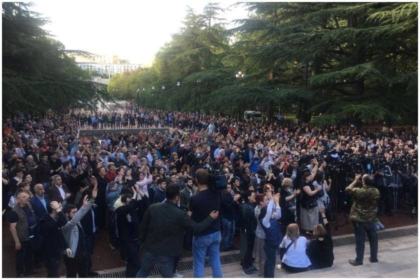 პარალელურად რუსთაველის გამზირზე ოპოზიციური პარტიების აქცია დაიწყო. „ნაციონალური მოძრაობამ“ და სხვა ოპოზიციურმა პოლიტიკურმა პარტიებმა განაცხადეს, რომ ისინი გაერთიანებული ძალებით აპირებენ სისტემის წინააღმდეგ ბრძოლას. აქციაზე როლანდ ახალაიაც მივიდა.