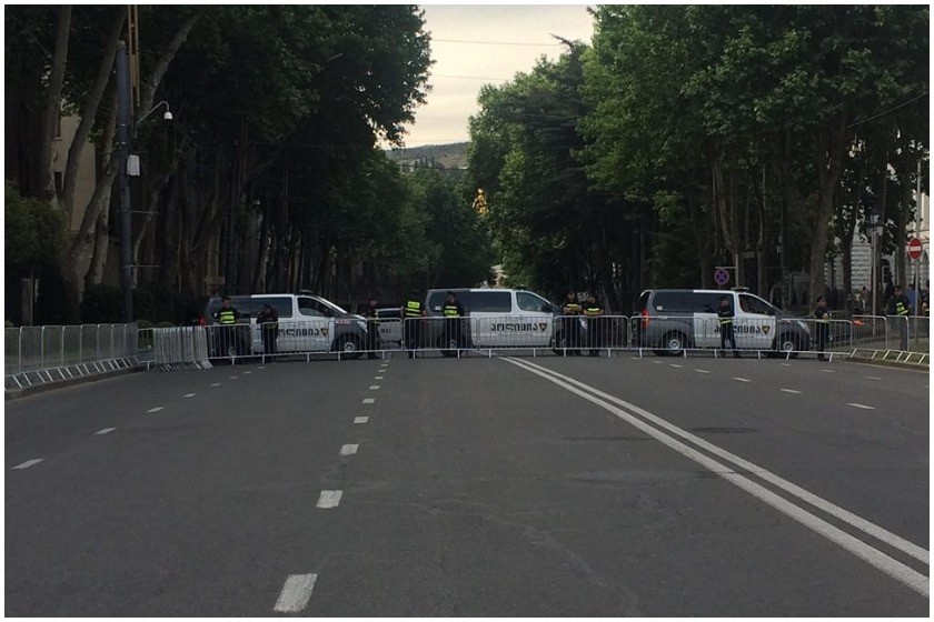 „შინაგან საქმეთა სამინისტროს საპატრულო პოლიციის დეპარტამენტი გაცნობებთ, რომ თბილისში, რუსთაველის გამზირზე, პარლამენტის შენობის წინ მიმდინარე აქციის გამო, N 1 საჯარო სკოლიდან 9 აპრილის ქუჩის და რუსთაველის გამზრის კვეთამდე ავტოსატრანსპორტო საშუალებებისთვის მოძრაობა დაკეტილია, შესაბამისად ავტომანქანები იმოძრავებენ შემდეგი მიმართულებებით: