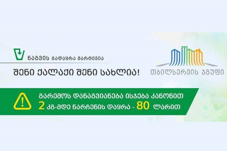 სიგარეტის ნამწვის, მზესუმზირისა და სხვა ნარჩენების დაყრისთვის ჯარიმა 80 ლარი იქნება. 2 კილოგრამზე მეტი წონის ნარჩენზე კი 150.