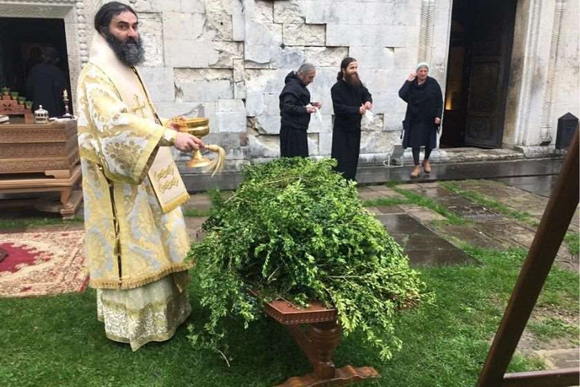 ნაკურთხი ბზა მრევლს უფასოდ დაურიგდა.