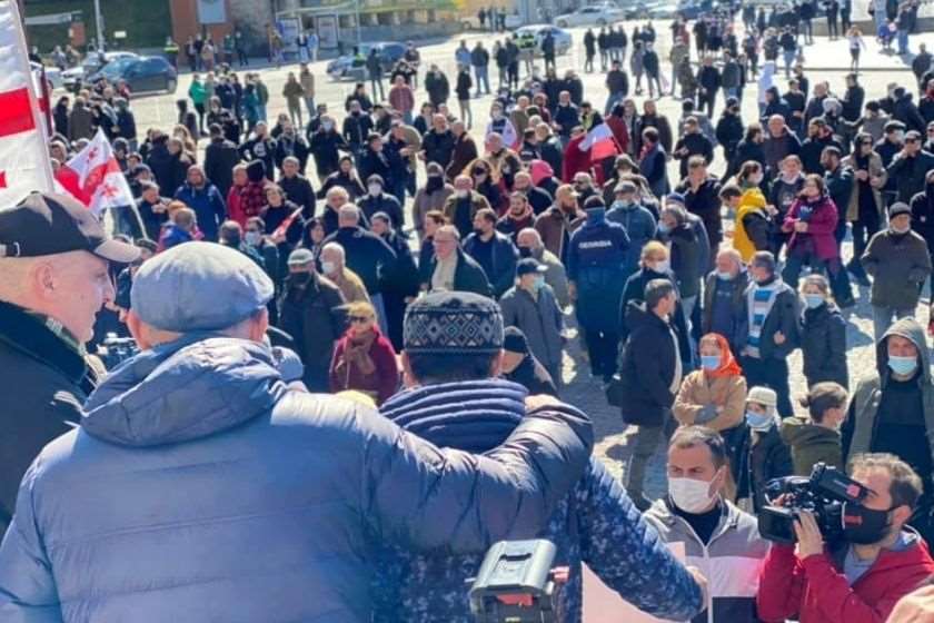 ნამახვანჰესის მშენებლობის წინააღმდეგ აქციის მონაწილეები ქუთაისში ცენტრალურ მოედანზე იკრიბებიან.