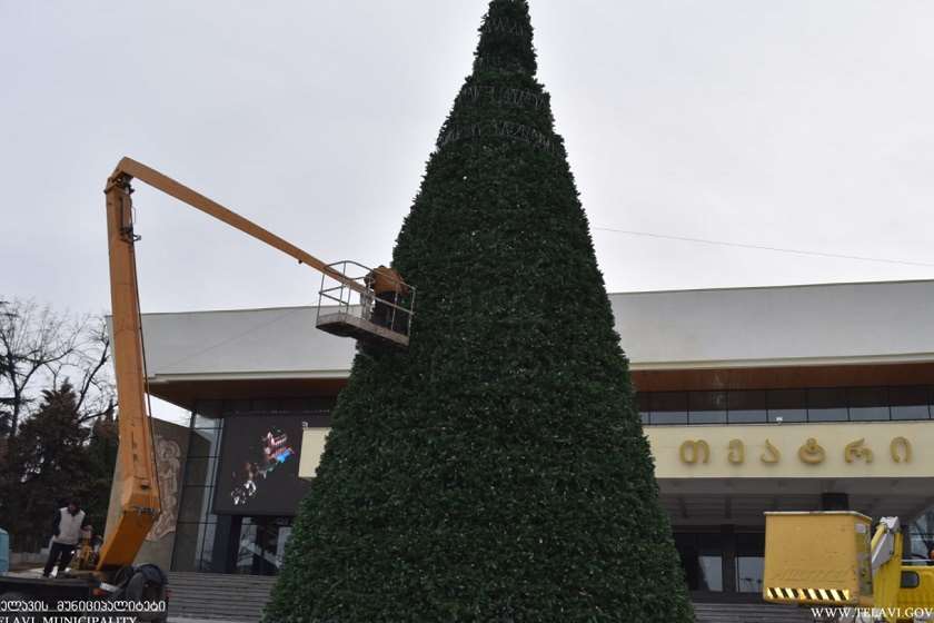 თელავში ქალაქის მთავარი ნაძვის ხე და საახალწლო ილუმინაციები დააზიანეს