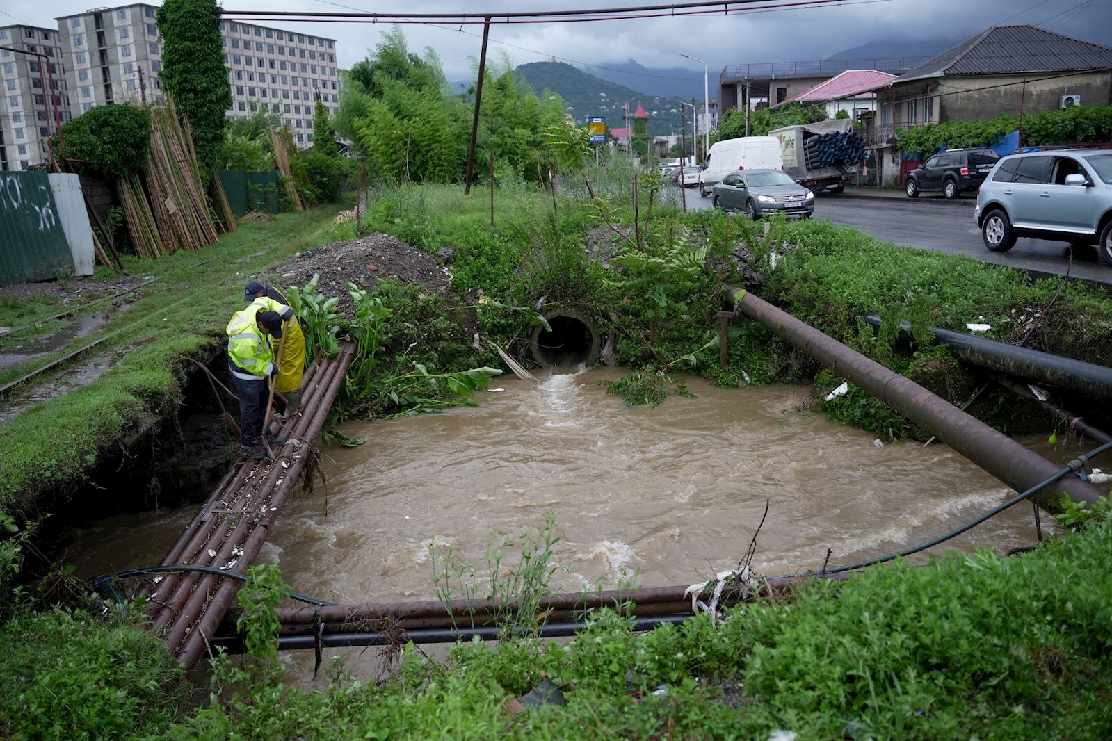 ბათუმში ძლიერი წვიმის შედეგად მდინარეები ადიდდა, რამაც არხებში ნატანის დაგროვება გამოიწვია.