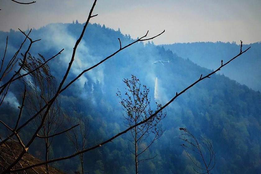 არჯევანიძის ტყეში ხანძრის ჩაქრობის პროცესში ვერტმფრენი ჩაერთო
