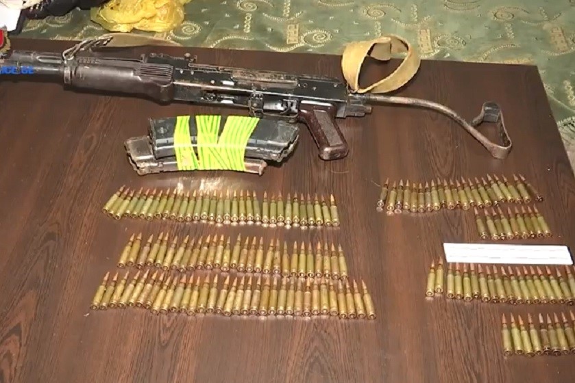 სამართალდამცველებმა, დაკავებულის ბინის ჩხრეკისას, AKS-ის მოდელის ავტომატური ცეცხლსასროლი იარაღი, 2 მჭიდი და 150 ვაზნა ამოიღეს.
