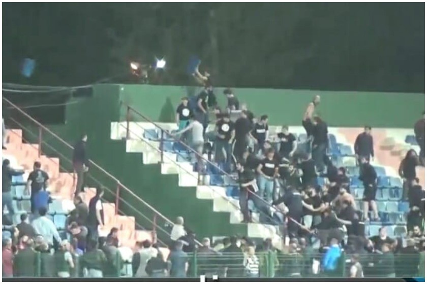 სიტყვიერი შეურაცხყოფა ფიზიკურ დაპირისპირებაში გადაიზარდა, ორივე გუნდის მხარდამჭერებმა დაამტვრიეს და დააზიანეს სტადიონის სკამები.