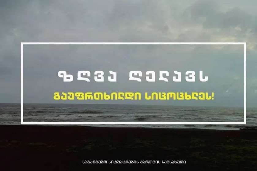 საგანგებო სიტუაციების მართვის სამსახური მოსახლეობას აფრთხილებს. ამავე ინფორმაციით, შავ ზღვაზე საშტორმო მდგომარეობაა გამოცხადებული.