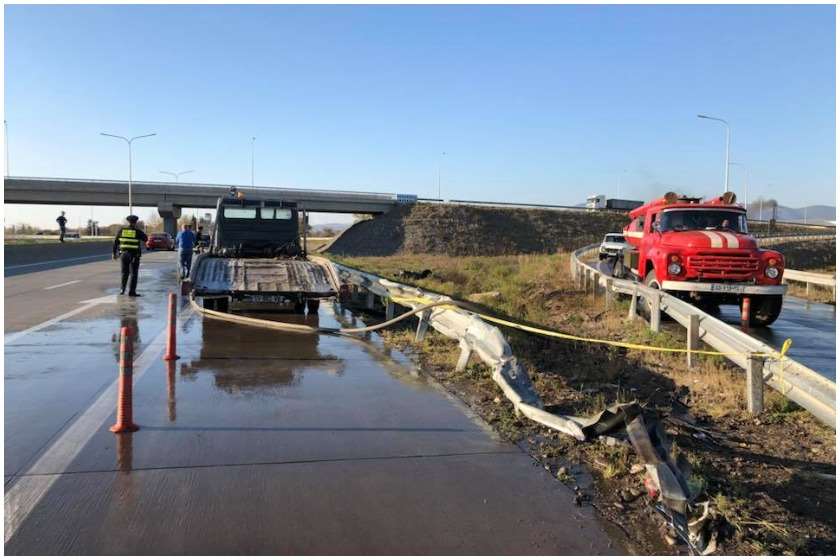 მაღალი სიჩქარით მოძრავი ავტომობილი ჯერ ბოძს შეეჯახა, შემდეგ კი გზიდან გადავიდა და ცეცხლი გაუჩნდა. ავტომობილი მთლიანად დაიწვა. დაშავებულები საავადმყოფოში გადაიყვანეს. მათ სიცოცხლეს საფრთხე არ ემუქრება.
