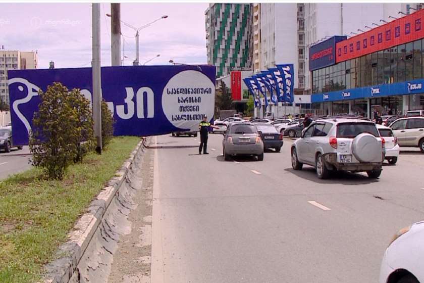 თბილისში, მარშალ გელოვანის გამზირზე ქარმა სარეკლამო ბანერი ჩამოადგო.