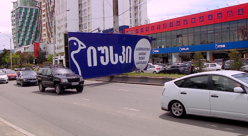 თბილისში, მარშალ გელოვანის გამზირზე ქარმა სარეკლამო ბანერი ჩამოაგდო
