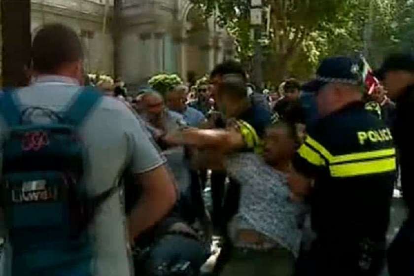 „ცხვირი მქონდა გატეხილი, თვალი - დაზიანებული და ტუჩი გამიკერეს. გუშინ, კამერას ჩაარტყეს დროშა. როცა მივხვდი, რომ ძალიან აგრესიულები იყვნენ და აღარ ღირდა იქ გაჩერება, ვცდილობდი, წამოვსულიყავი. მაგ მომენტში, ძალიან ძლიერად მომხვდა ცხვირში, არ ვიცი, მუშტი იყო, ჯოხი თუ რამე სხვა. გონება არ დამიკარგავს და ყველანაირად შევეცადე, რომ გავცლოდი. როცა გავრბოდი, რამდენიმე ადამიანი მირტყამდა. არ ვიცი, რამდენი იყვნენ“, - ამბობს „პალიტრანიუსის“ ოპერატორი რომან ტარუღიშვილი.