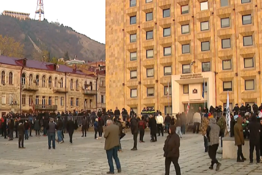 ამ დროისთვის, მთავრობის ადმინისტრაციასთან, სადაც „ნაციონალური მოძრაობის“ რამდენიმე მხარდამჭერია შეკრებილი, სიმშვიდეა. აქციის მონაწილეებთან, პერიოდულად, პარტიის ლიდერები კონკრეტული დირექტივების მისაცემად მიდიან. შეკრებილების მთავარი მოთხოვნა მსჯავრდებული სააკაშვილის გათავისუფლებაა. რამდენიმე წუთის წინ მათ ნიკა მელია შეუერთდა.