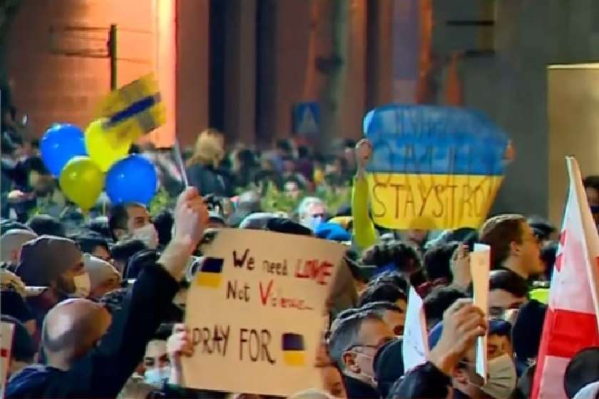 თბილისში, რუსთაველის გამზირზე უკრაინის მხარდამჭერი აქცია დღესაც იმართება