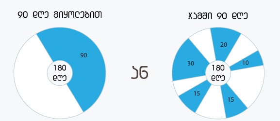 180 დღიდან 90 დაშვებული დღის გამოყენება შეიძლება გადაბმულად ან დღეების გადანაწილებით.