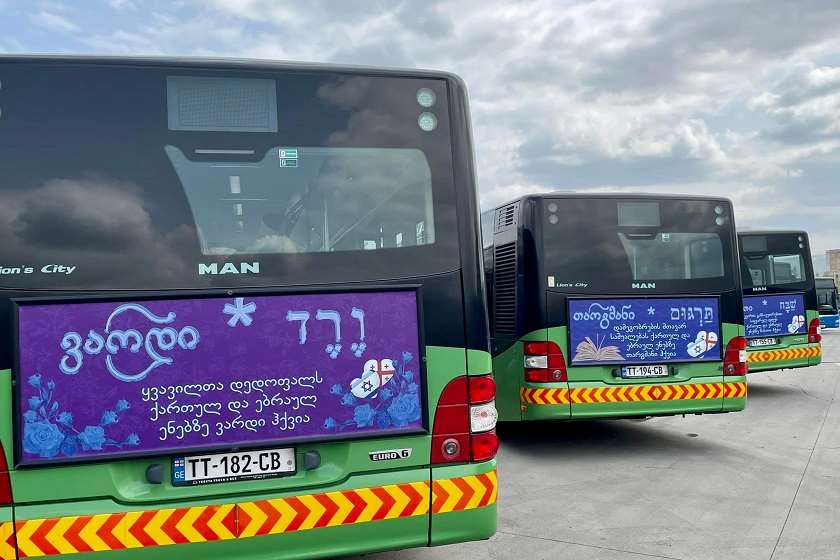 თბილისის ავტობუსებზე ორ უძველეს ენას - ებრაულსა და ქართულს შორის მჭიდრო კავშირის ამსახველი წარწერები განთავსდა
