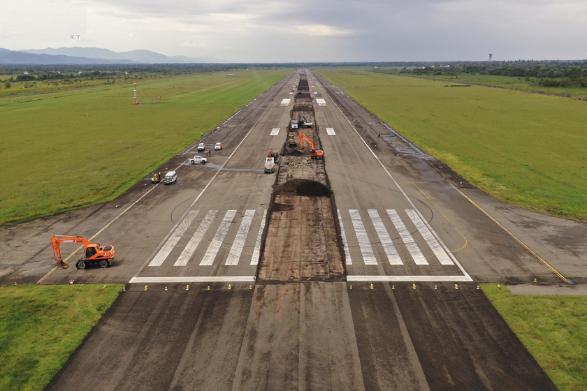 „რეაბილიტაციის პროცესში მოხდა ასფალტობეტონის საფარის დაზიანებული ადგილების ფრეზირება. საფუძველზე, სადაც ყველაზე მეტად იყო ბეტონის ფილები დაზიანებული, მოხდა ფილის დემონტაჟი. ამავე ფართზე გამაგრდა საფუძველი ცემენტნარევი ქვიშა-ღორღით. ასაფრენ-დასაფრენი ზოლის შუა ნაწილში ორ ფენად დაიგო 80მმ სისქის მსხვილმარცვლოვანი ასფალტობეტონის საფარი. ასევე, ასაფრენ-დასაფრენი ზოლის ცენტრალურ უბანზე წვრილმარცვლოვანი მოდიფიცირებული ასფალტობეტონის 50მმ სისქის საფარი გაკეთდა“, - აღნიშნულია აეროპორტის განცხადებაში.