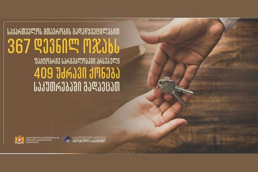 ეკონომიკის სამინისტროს ინიციირებით, 367 დევნილ ოჯახს წლების განმავლობაში ფაქტობრივ სარგებლობაში არსებული უძრავი ქონება დაუკანონდა