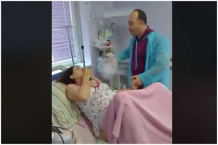 სოციალურ ქსელში გავრცელდა ვიდეო, რომელზეც ახალგაზრდა მშობიარე ქალი, მეუღლესთან ერთად "O sole mio"-ს მღერის.