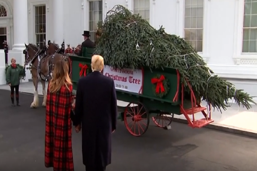 თეთრ სახლში საახალწლო ნაძვის ხე მიიტანეს - შობა-ახალი წლის მთავარ სიმბოლოს დონალდ და მელანია ტრამპები შეეგებნენ. 6 მეტრის სიმაღლის ნაძვის ხე, ტრადიციულად, ცხენებშემბული ეტლით მიიტანეს.