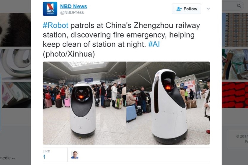 ჩინეთის პროვინცია ხენანში პირველმა რობოტმა-პოლიციელმა დაიწყო მუშაობა. ის ქალაქ ჩჟენჩჟოუში რკინიგზის სადგურის მოსაცდელ დარბაზში პატრულირებს, - წერს gbtimes-ი.
